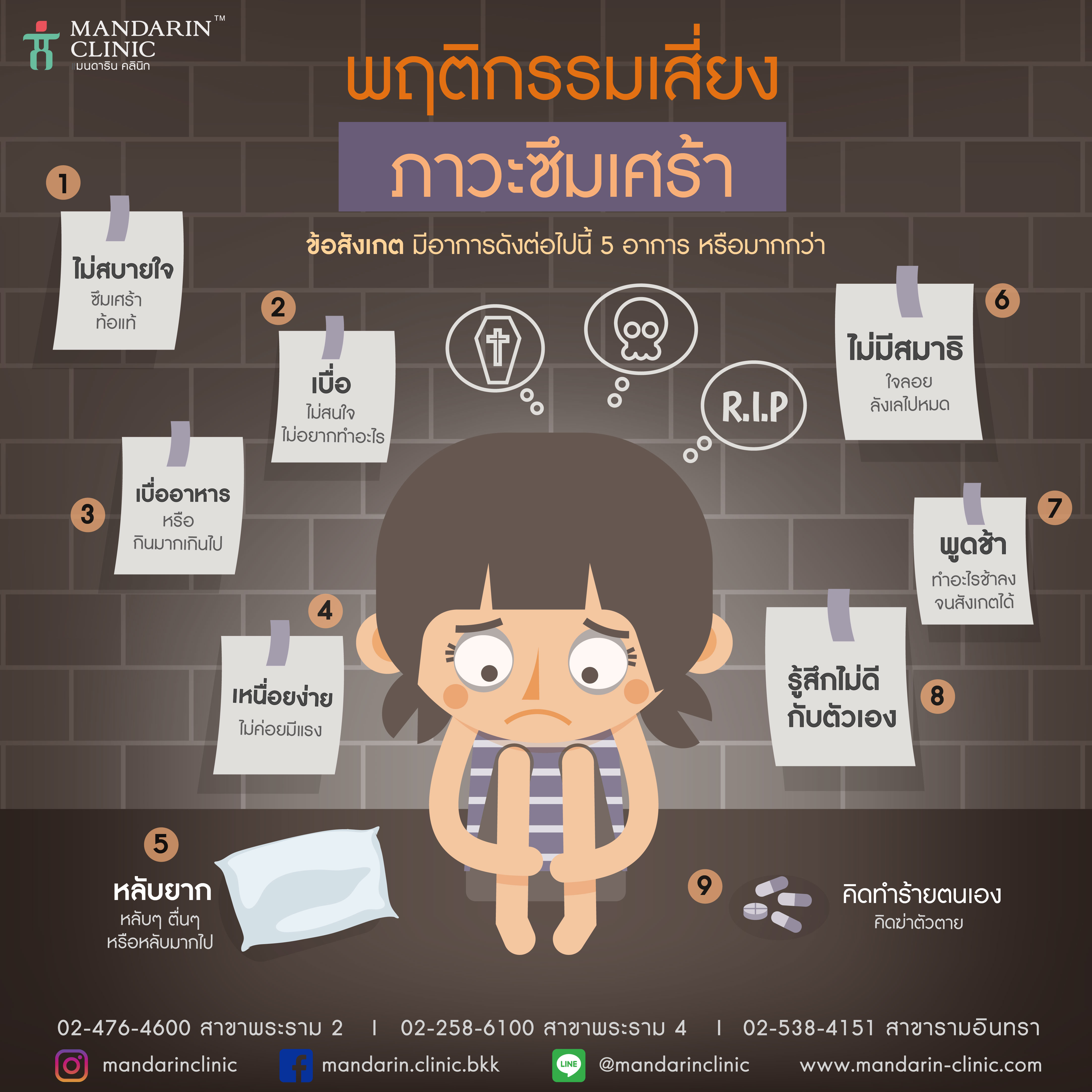 - มีความคิดอยากตาย คิดทำร้ายตัวเองอาการของโรคซึมเศร้า